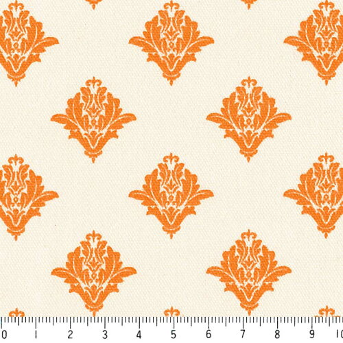 オーナメント 7279-54 オレンジ 紋章 おしゃれ ダマスク アラベスク 王家 ビクトリア様式 橙 かわいい 10cm単位 やや厚手 生成りオックス生地 綿100% 110cm 布 カルトナージュ 生地 クッション 商用利用可 生地